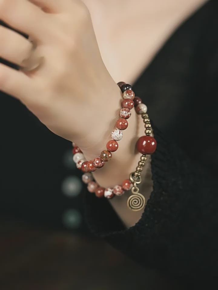 【Zhumai Shuangrong】Flower Red Stone/Agate Bracelet